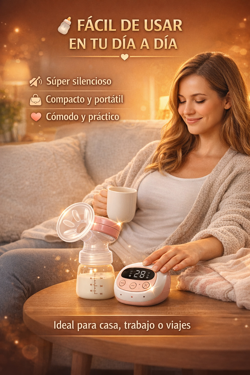 MamaEase Pro™ está diseñado para mamás reales que necesitan practicidad sin sacrificar bienestar. Gracias a su tecnología de succión inteligente, imita el ritmo natural del bebé, permitiendo una extracción más eficiente, suave y completamente adaptada a tu cuerpo.
